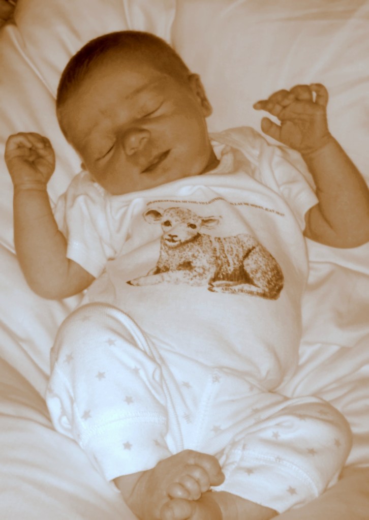 Baby Izzy modeling ABINA’S Lamb Jams…